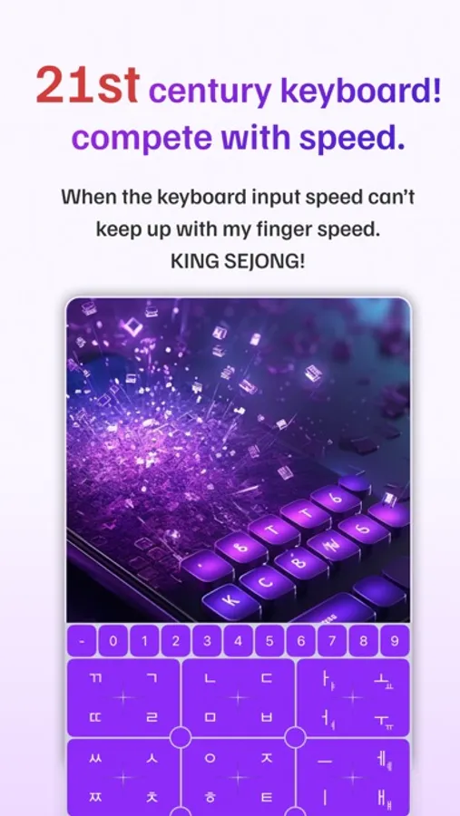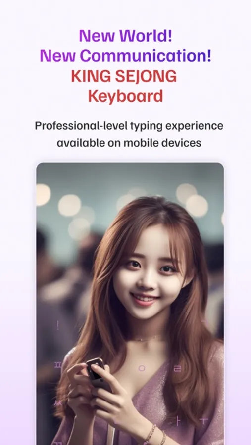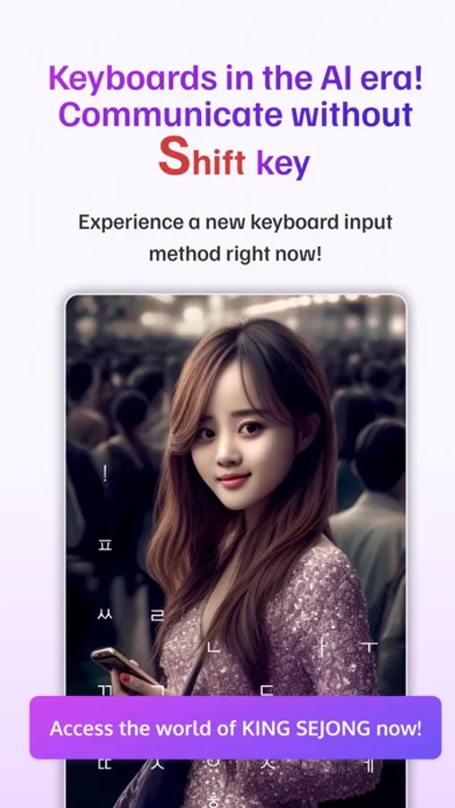 xperience a new, faster way to type on your mobile keyboard without the need for the shift key with the KING SEJONG Keyboard! It offers professional-grade typing, accurate input, fast typing, and the freedom to design according to your personality. KING SEJONG Keyboard offers a variety of keyboard arrangements, customizable key layouts, screen layout settings, favorite images, favorite texts, and more to customize your typing experience for different environments and personalities.