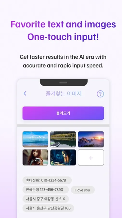 This is an innovative feature that allows you to pre-register frequently used addresses, account numbers, phone numbers, and images to enter sentences with just one touch when typing. This is a very useful feature that is perfect for a lifestyle that involves various deliveries, transfers, and contact exchanges these days.