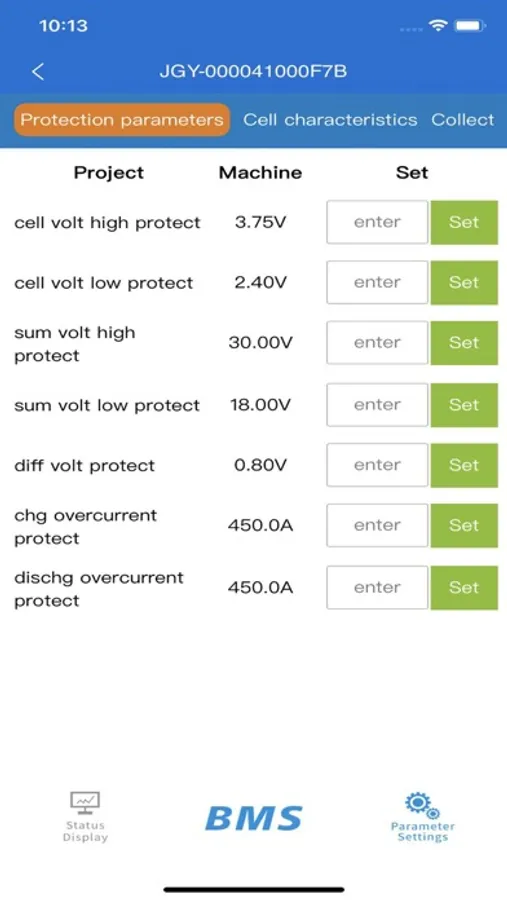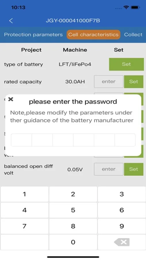 3. Set and read the battery protection parameters. The user sets the parameters and needs to input the password to modify the parameters;