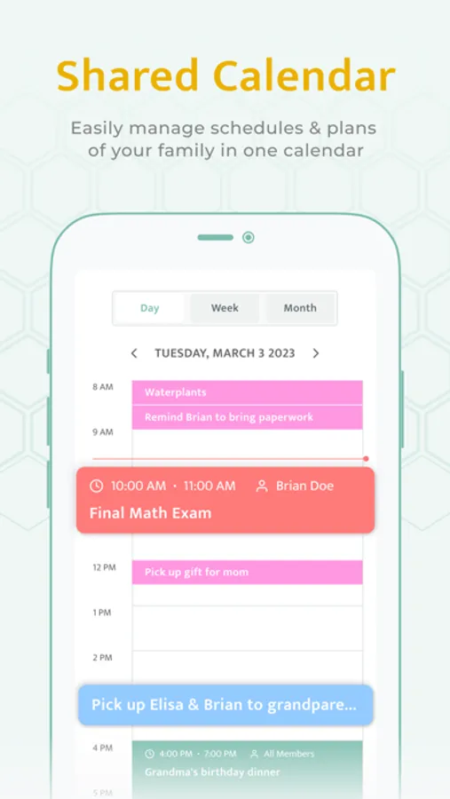 * Add and share events and appointments with your family to avoid scheduling conflicts.