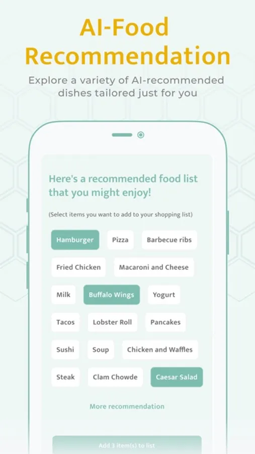 * Update your food preferences daily and explore a variety of AI-recommended dishes tailored just for you.