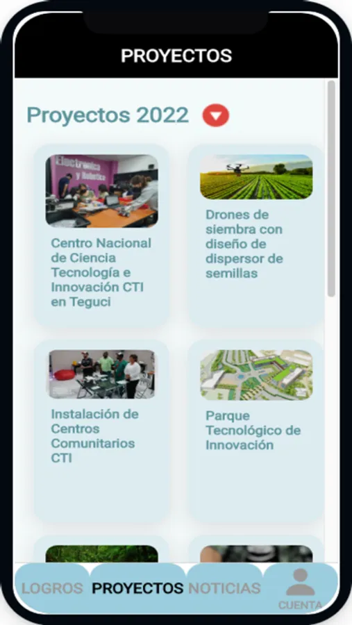 En la sección de proyectos se puede visualizar los proyectos desarrollados por SENACIT, se puede visualizar la descripción del mismo, videos e imágenes.