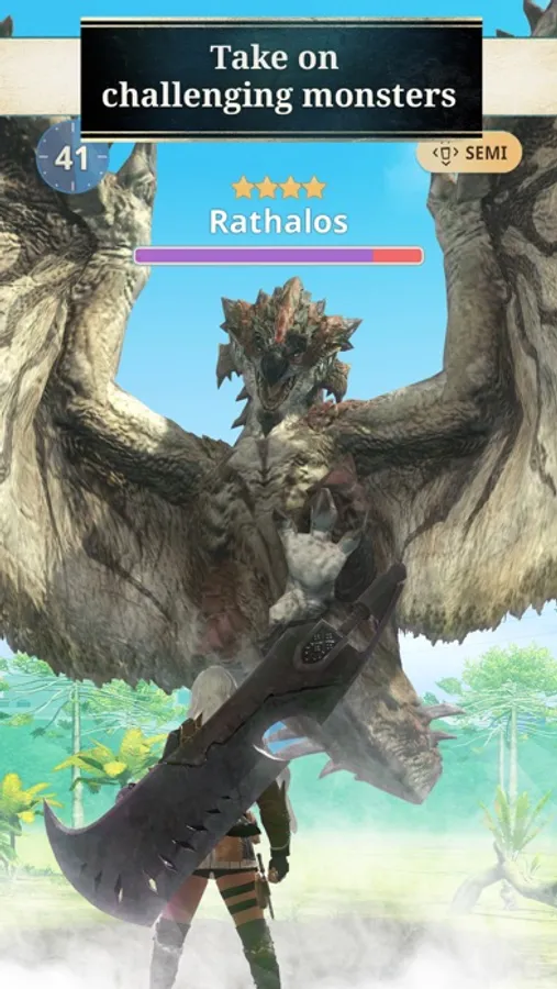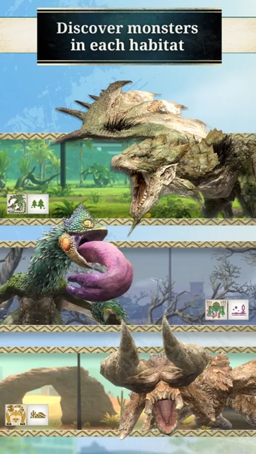 Discover a variety of monsters depending on the habitat around you – Forest, Desert or Swamp – and engage in thrilling hunts solo, or band together with fellow hunters to take on these large monsters. The simplified tap-based controls and high-fidelity graphics enable you to engage in enjoyable hunting action wherever you go.