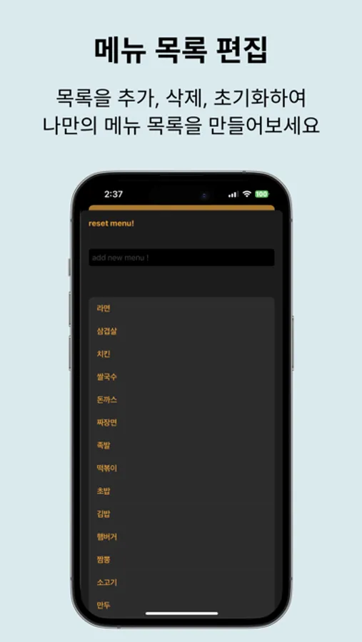 목록을 수정해 나만의 메뉴목록을 만들어봅시다