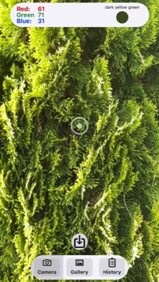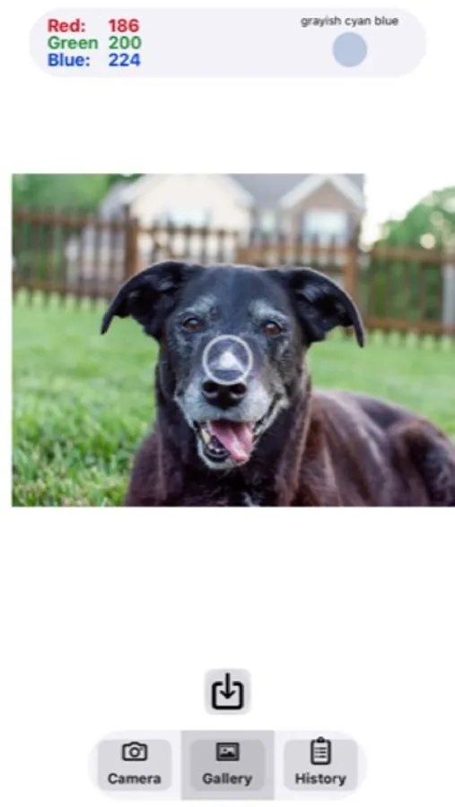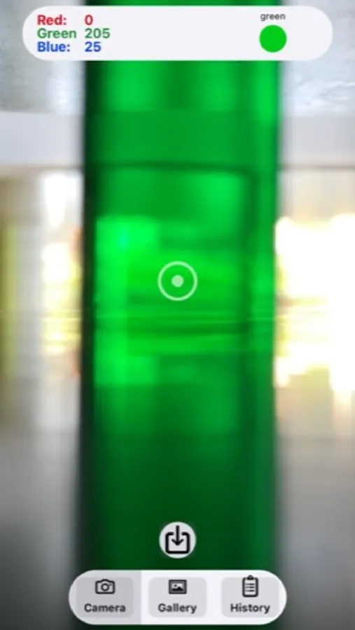 3. Use the share button to save the RGB values for the image target to the app’s History.
