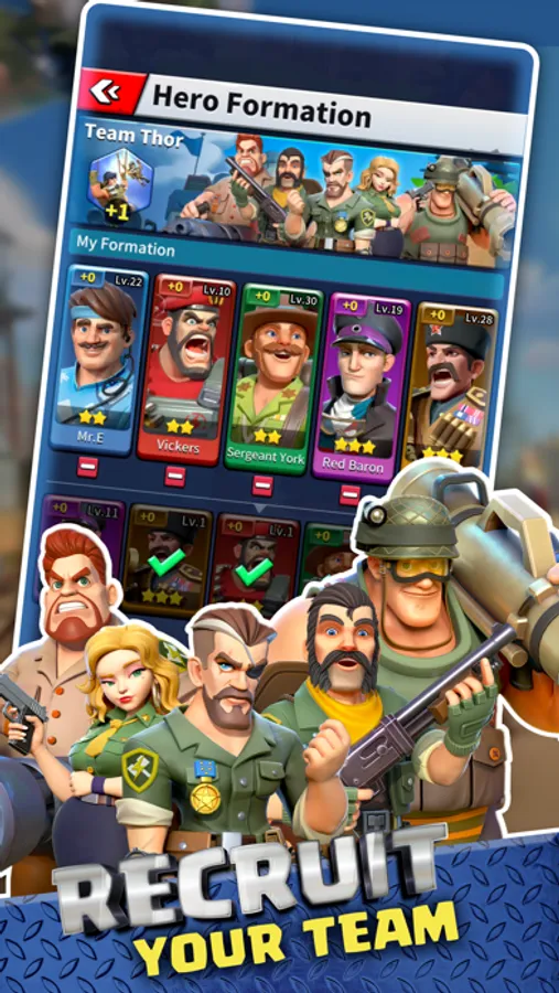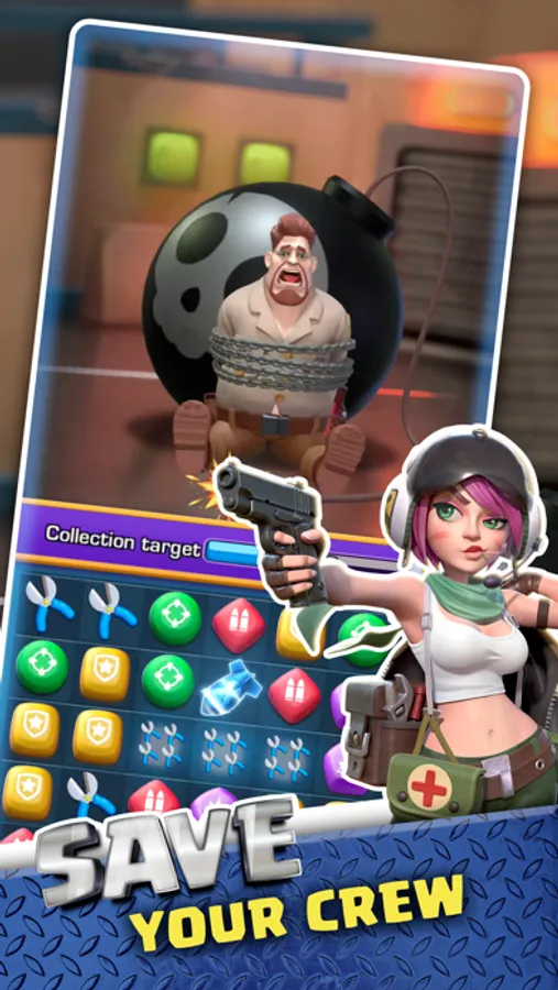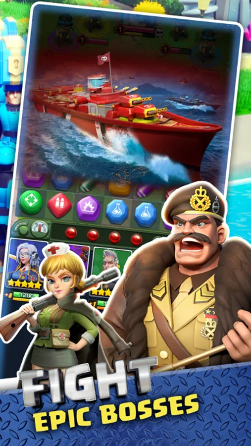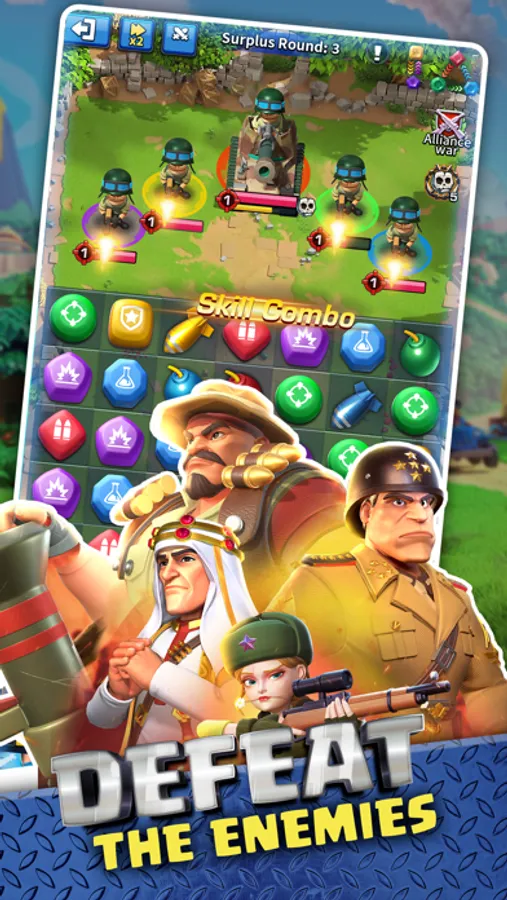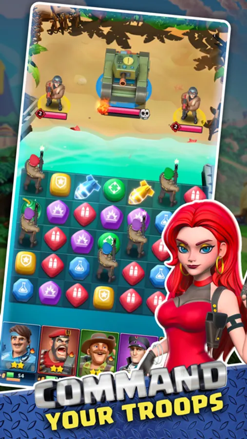 Playing this realistic match-3 puzzle game, you will find the most attractive hero designs from different walks of life. Gross, Red Baron, Sergeant York, Yuri, Mr. E, Karuna, and many others will fight together to defeat the enemies. You will be able to recruit talented heroes and enhance your troops.