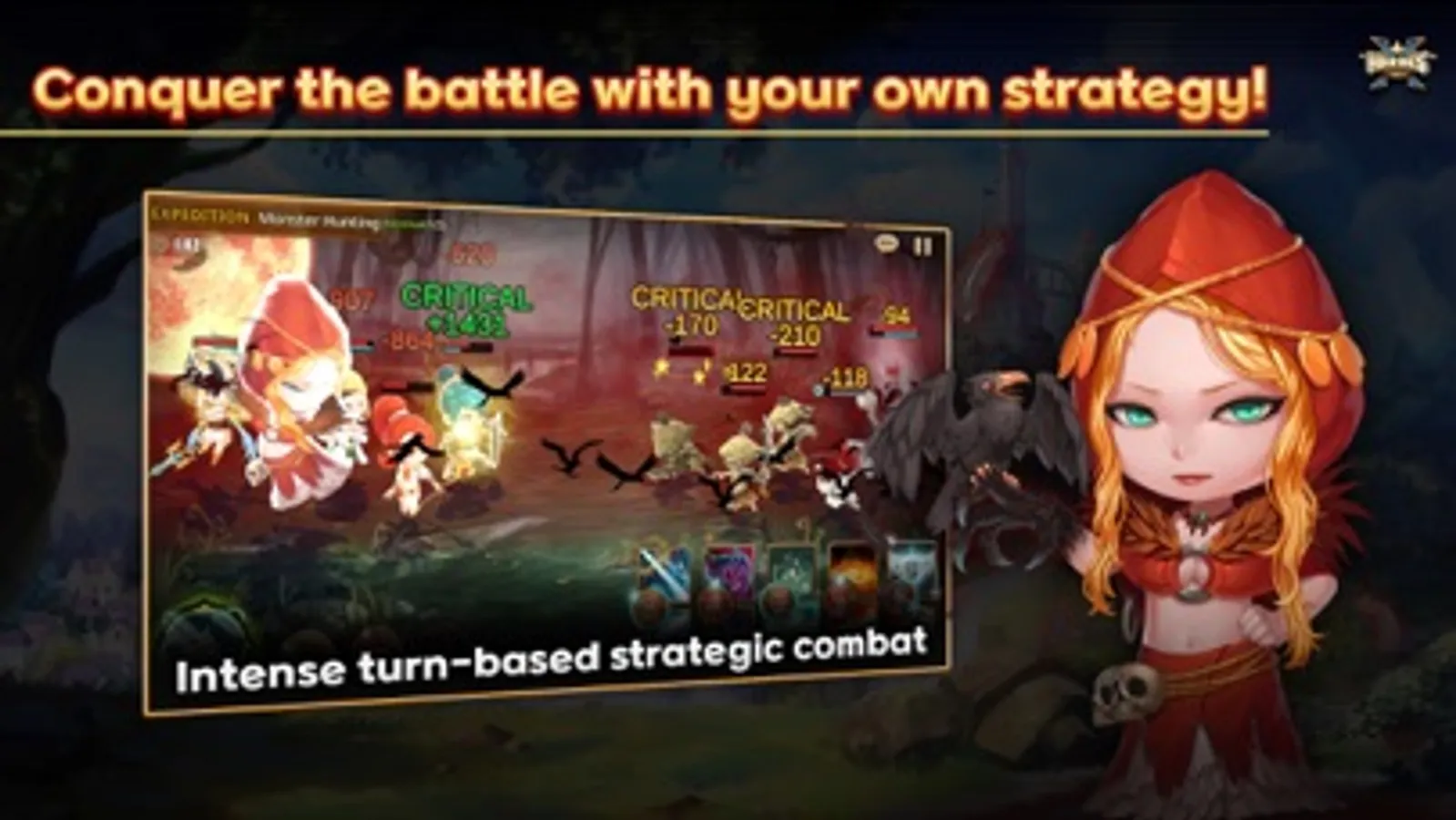 * Use the optimal strategy by controlling various variables such as hero arrangement, skill selection, and activation timing. You can enjoy a powerful turn-based strategy battle.