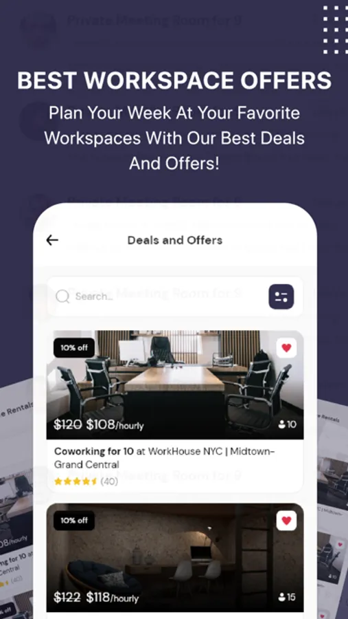 Customers can view the latest deals on office rentals and place their requests for booking.