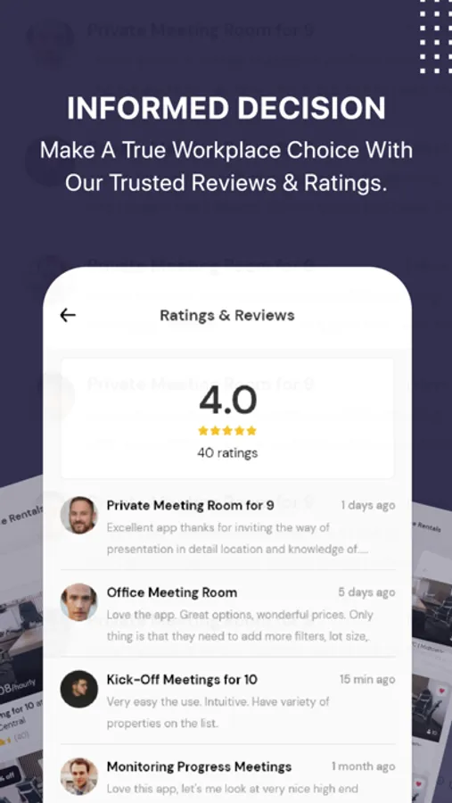 Beries empowers its users to look for their ideal workplace. Then, while you're away from your typical workspace, let yourself feel elated.