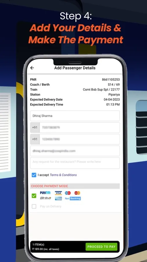 • Confirm Passenger Details: Enter passenger name and contact details for delivery purposes.