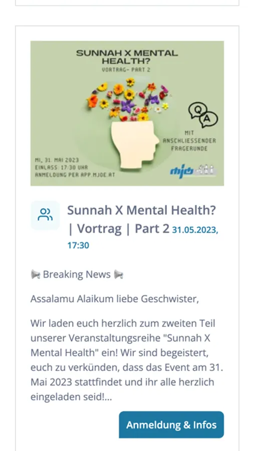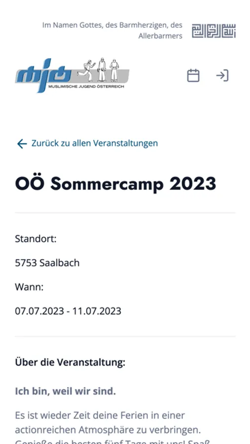 Diese App dient als Übersicht, für Veranstaltungen der Muslimischen Jugend Österreich. Nutzer dieser App können zukünftige Veranstaltungen einsehen und sich zu diesen anmelden.