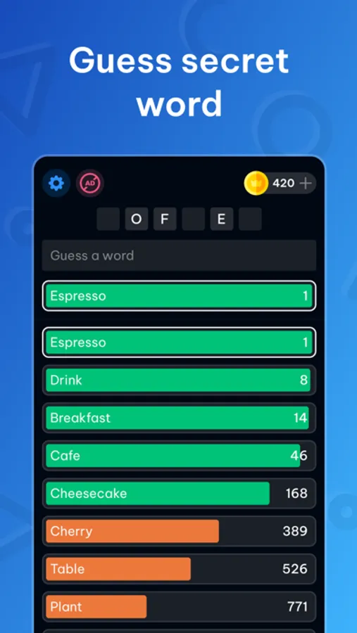 Guess secret word by entering words related to it!
