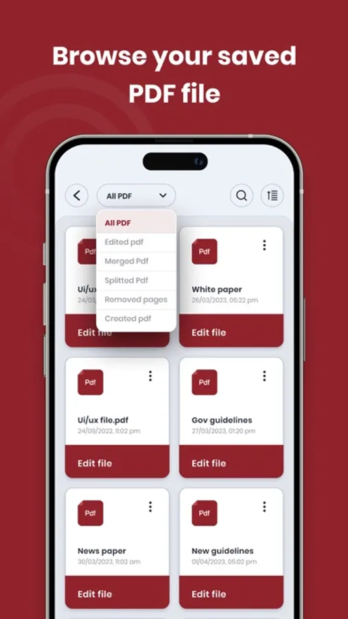Access all your saved PDFs in one place. Easily locate specific PDFs by applying filters based on importance. Quickly find all PDFs, edited PDFs, merged PDFs, spliced PDFs, removed pages, and created PDFs. Simplify your PDF management and retrieval process.