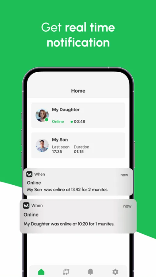 Discover all the features available in our When application, designed to serve your needs. Our app is designed for parents to monitor their child's WA online activity.