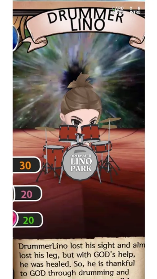 CARD AR : 드러머 리노의 아이템카드를 비추면 ‘VR’ 기능이 활성화 됩니다.