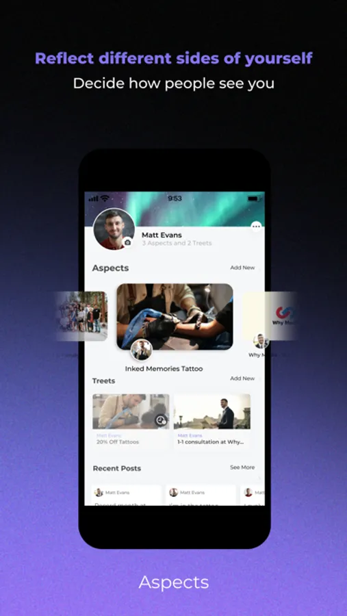 Create multiple Aspects to reflect yourself from different sides and selectively share posts with specific relations.
