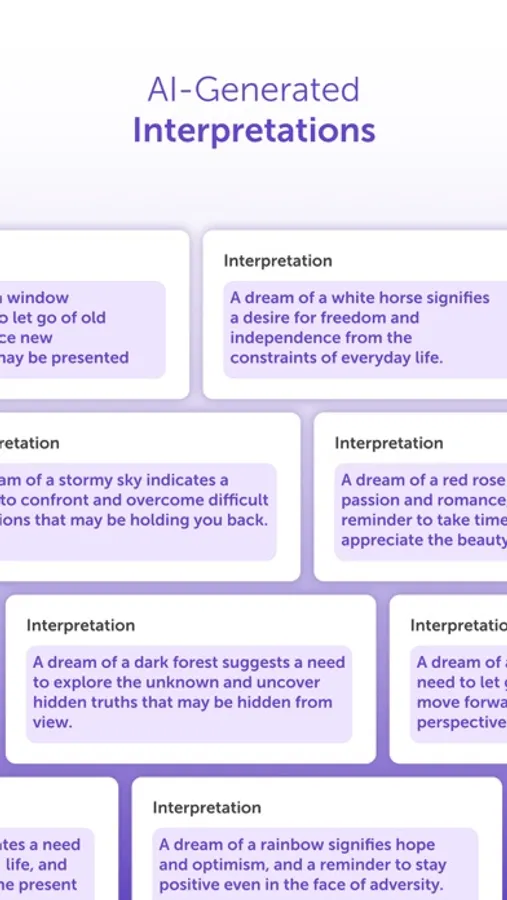 - Instant interpretations that shed light on the hidden meanings behind your dreams