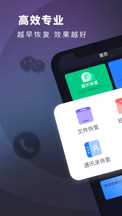 支持照片恢复、聊天记录恢复、视频恢复、文件word、Excel、ppt、pdf、txt、等恢复