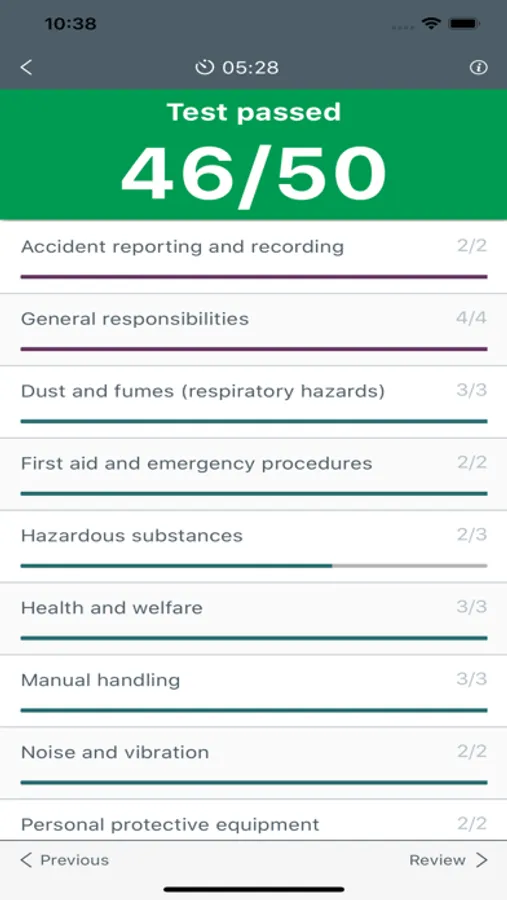 • Review your progress with a comprehensive breakdown of scores – look at individual questions to see which answers are correct, and watch as your scores improve over time with practice