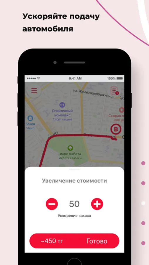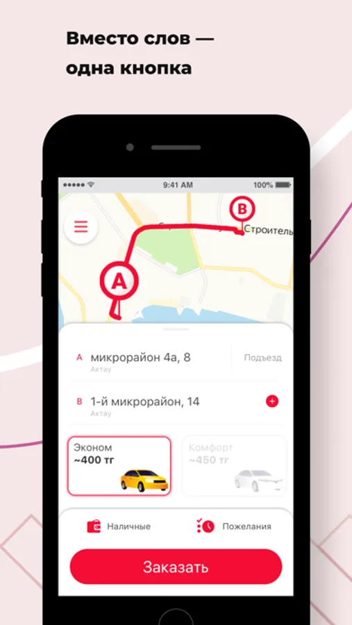 Откройте приложение, укажите адрес и закажите такси, нажав на одну кнопку.