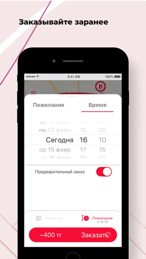 Нужен автомобиль к определенным времени и дате? Закажите его заранее через приложение, и в назначенное время такси будет ждать вас у подъезда.