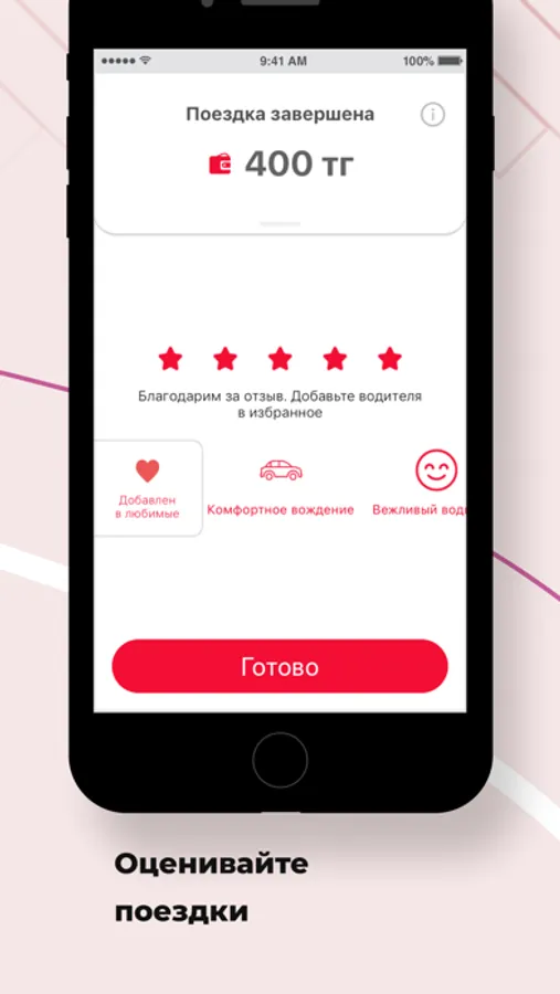 Оценивайте поездку с помощью готовых шаблонов. Занесите водителя в “Избранные”, если понравилась поездка.