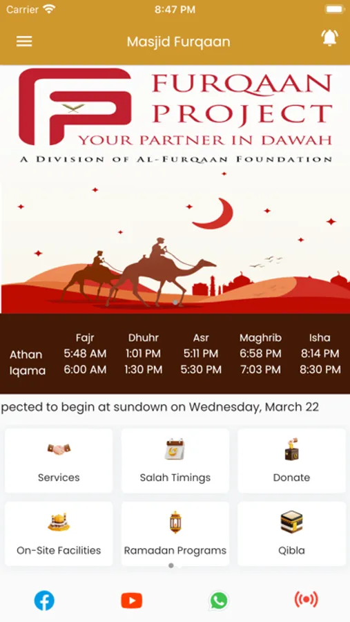 With our user-friendly App, you can stay connected with the Masjid Furqaan and receive updates on our latest events and activities. Our App features a prayer time schedule, push notifications for important announcements, and a calendar of upcoming events.