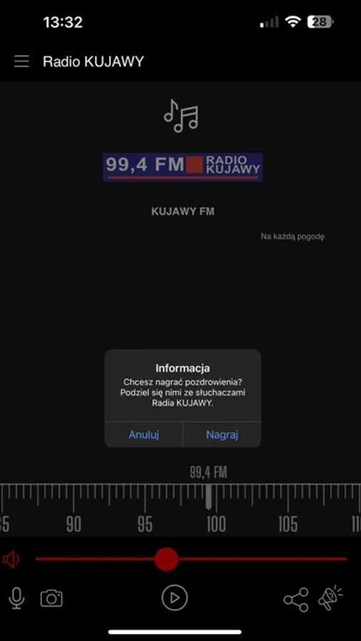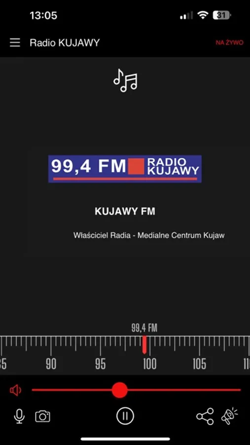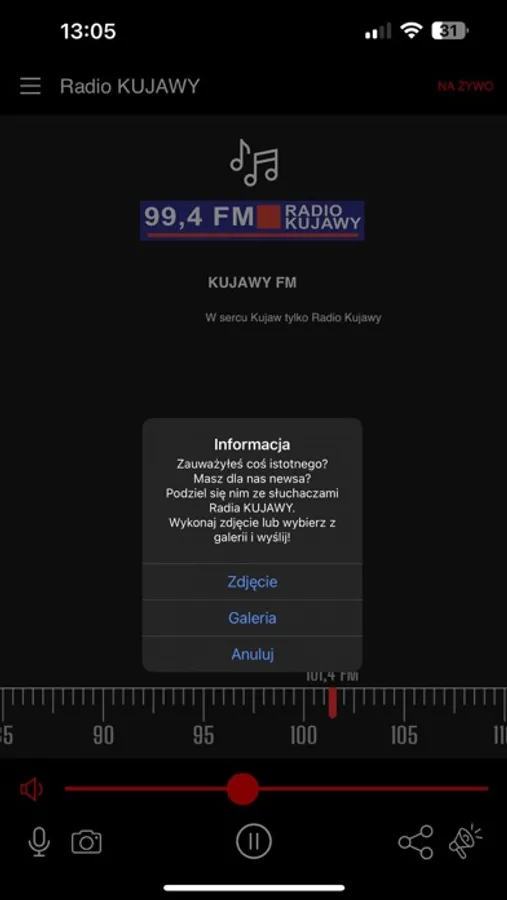 The RadioKUJAWY application allows you to listen to the radio live and send a photo and voice recording to the radio station.