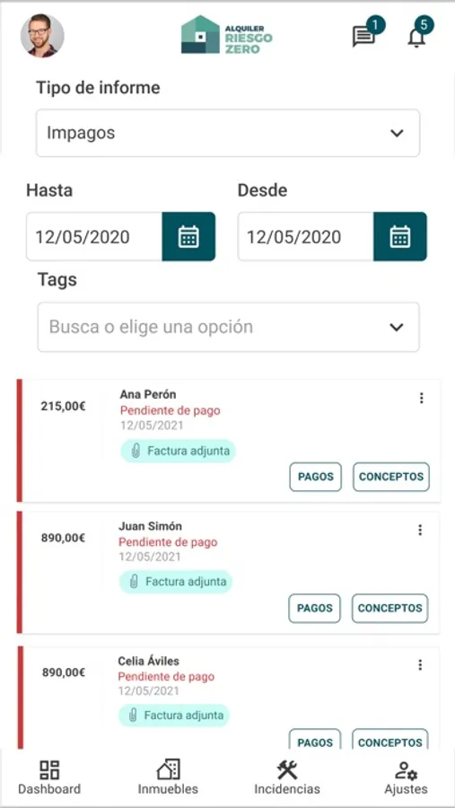 -Ver y descargar Reportes de rentabilidad, declaración de la renta, liquidaciones, impagos…