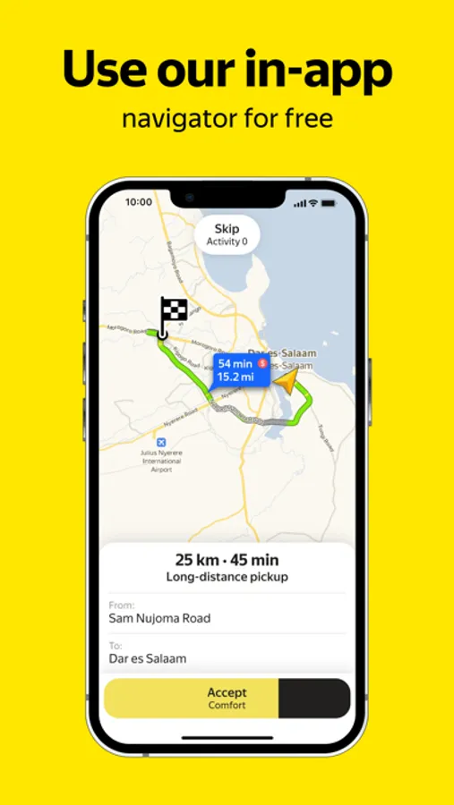 City car driving can be so easy with the app. Find clients and get them to their destination quickly thanks to our navigator. You don’t need to do anything – it will automatically fill in the address, get directions and guide you on your way. And yes, for you it’s absolutely free.