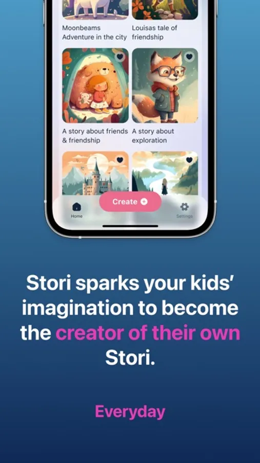 Stori app - a magical blend of creativity, storytime, and fun for you and your kids. Stori allows your kids to become the creator of their own story - powered by AI. You can create unique stories about our lovable characters with beautiful illustrations centered around important values like friendship or courage. Let's create unforgettable Stories together!