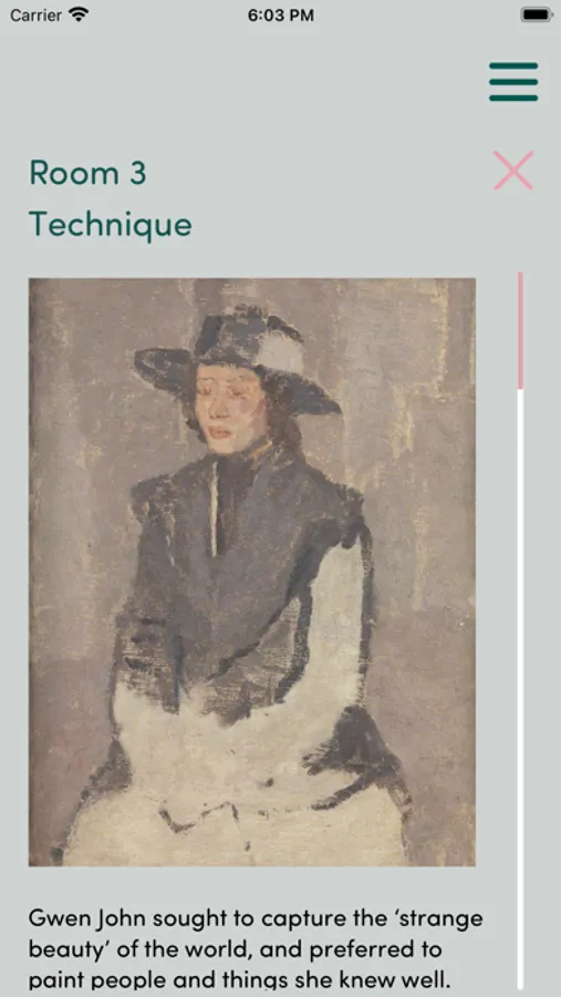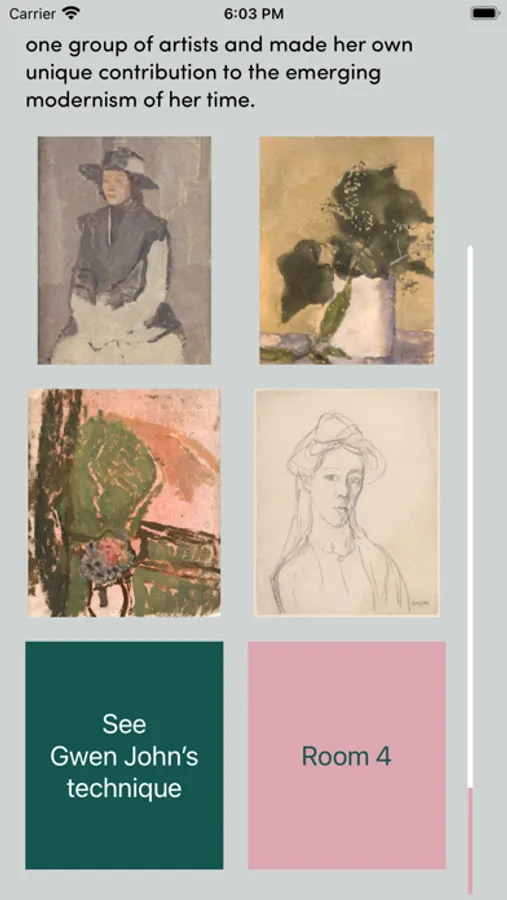 The +Archive: Gwen John app features artworks by artist Gwen John, from a range of