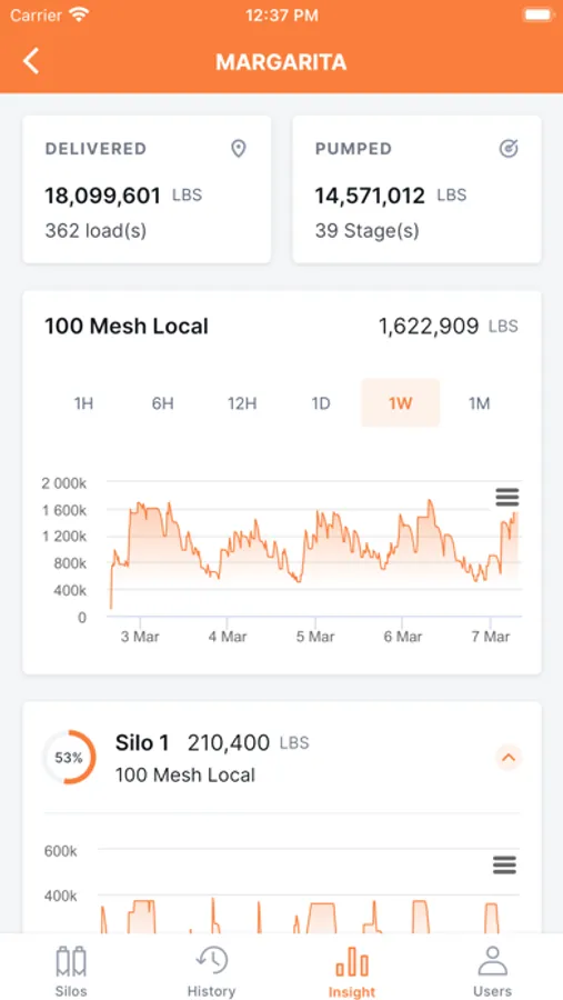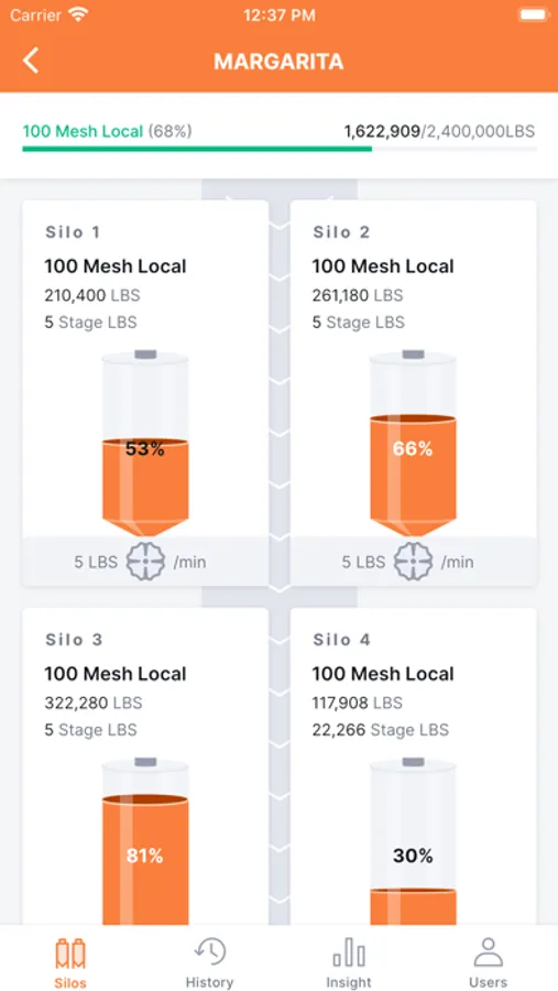 This application display NexStage Silo System which stores large proppant volumes in small-footprint vertical silos. Available in a range of sizes and configurations, each silo is delivered and erected in about two hours with a crane-free transport system. The Application visualize Silo data in Realtime and help decision maker make informed decisions.