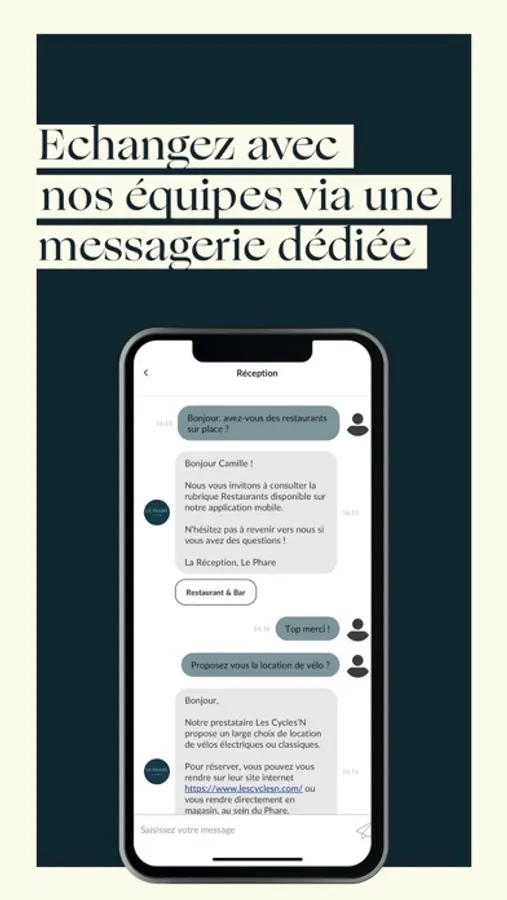 Throughout your stay this virtual pocket assistant provides access to all our services for a fully immersive experience in the heart of our destinations: