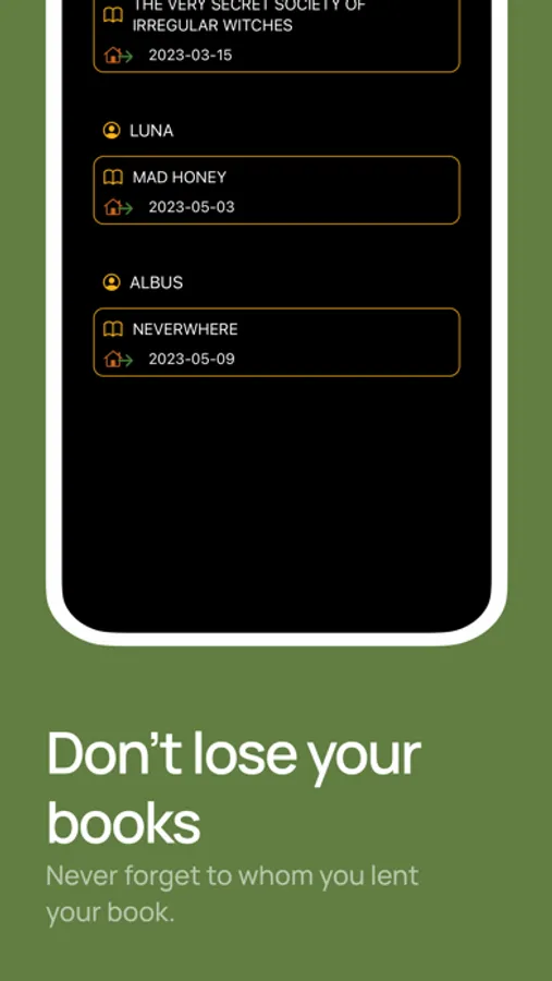 - Lists of borrowed and lent books