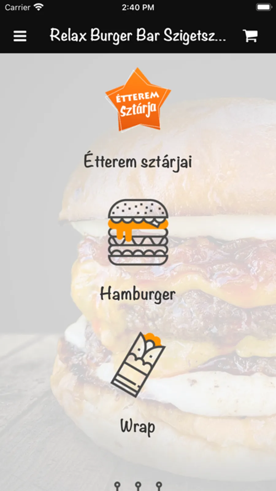 A szigetszentmiklósi Relax Burger Bar fő fókusza a hamburger, amelyben választható 100%-os marhahús vagy csirkemell. Házi szószokkal emelik az eleve minőségi hozzávalók színvonalát. Emellett éttermünk 37cm-es óriási wrap és tál kínálattal is csábítja a vendégeket. Aki nem éri be ennyivel, nézze meg az előétel és saláta választékot is. Éhen biztosan senki nem marad, az ételrendelés öröme csak néhány kattintásra van tőled!