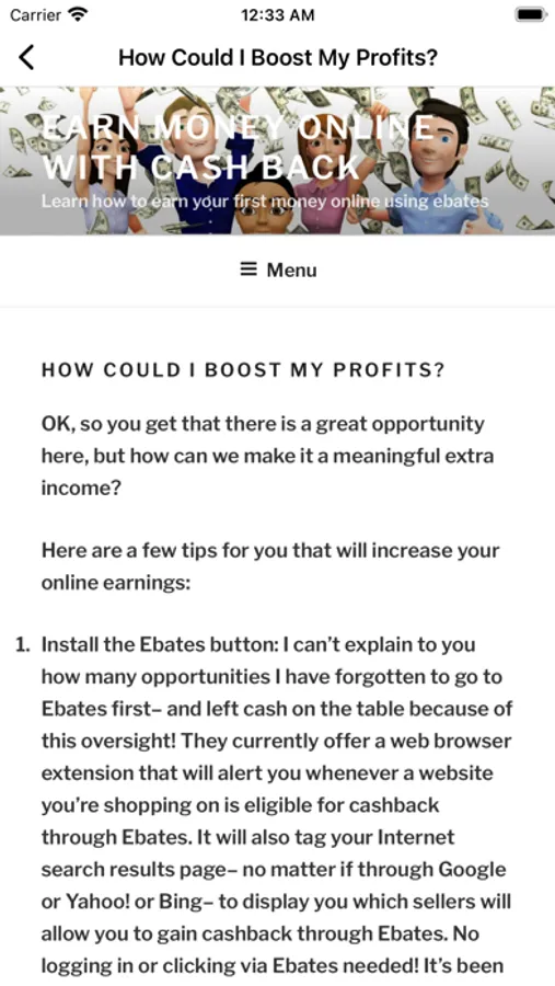 OK, so you get that there is a great opportunity making an extra cash, but how can we make it a meaningful extra income? We will show you tips that will increase your online earnings and create substantial extra money for example: Install the Ebates button, Refer your friends, Shop Double Cash Back Stores, use ebates app, In-Store Cash Back and more.