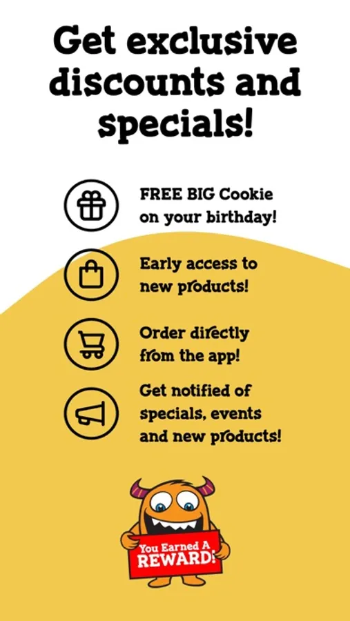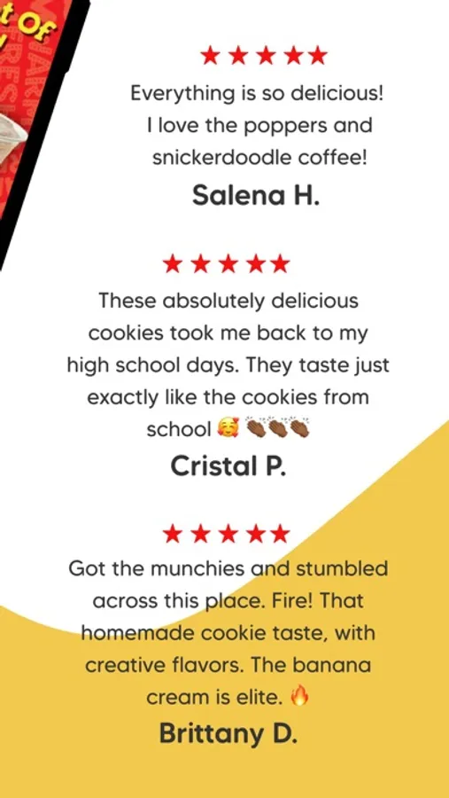 You’ll love our BIG delicious cookies (as big as your face!) our fiendishly delicious cookie cakes, edible cookie dough, tasty ice cream, cold brew coffees, milkshakes and more!