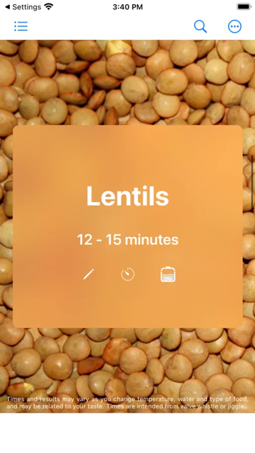 A wonderful app reporting the suggested timing to cook food in pressure cookers. It suggests minimum and maximum times and allow to easily set timers. As the results may vary with food type, taste, culinary traditions or even by the altitude of the place where you live, you can easily update the suggested times.