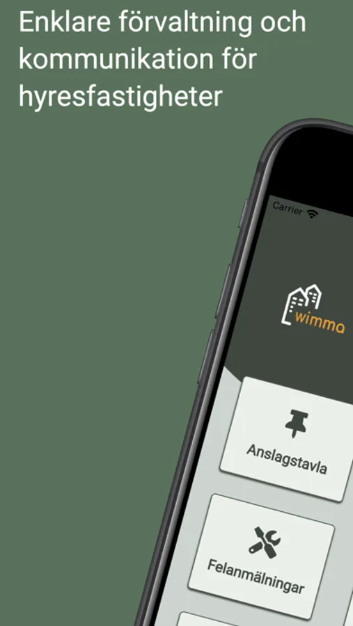 Din hyresvärd vill erbjuda dig att använda Wimma för att kunna göra felanmälningar och delges information från din hyresvärd via en digital anslagstavla. Felanmälningar gör du i tre enkla steg och du kan även följa ditt ärendes status. Din felanmälan delegeras till och utförs av fastighetsskötaren och kommunikationen rörande ditt ärende görs direkt i appen. Du får en notis när det sker en statusförändring eller när du får ett meddelande på din felanmälan. På anslagstavlan lägger din hyresvärd ut information rörande din fastighet så du är informerad vart du än befinner dig.