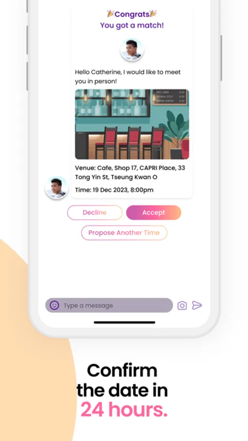 • Gain Control of Your Schedule: We cut the prolonged texting and find you the best timeslots for dates, so you can focus on better things in life.