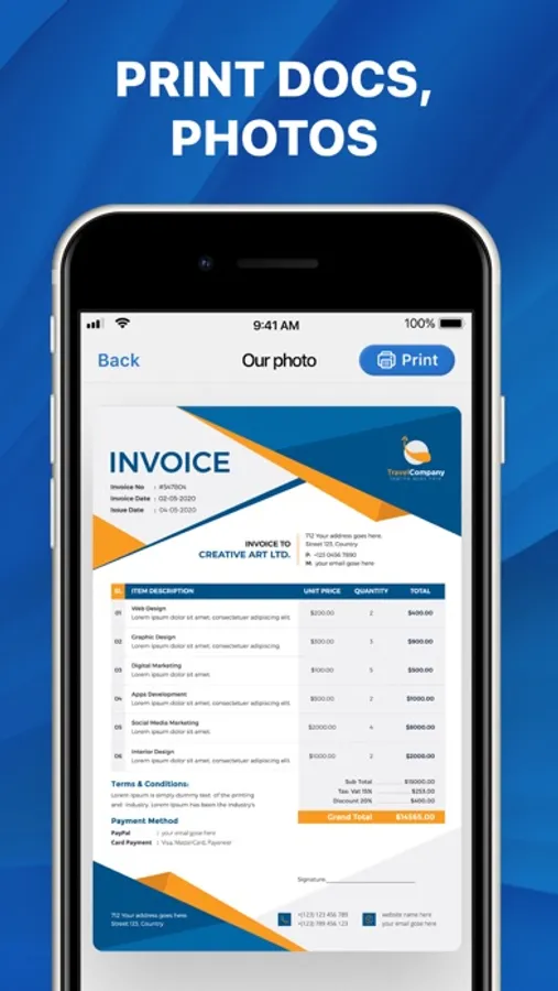 Our app lets you print wirelessly from your iPhone without additional software, making it incredibly simple to print your documents and photos without hassle.
