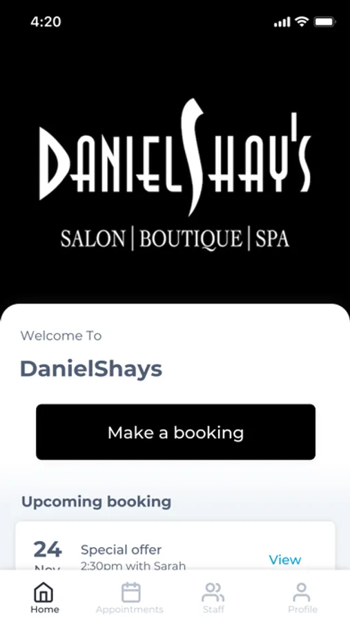 The DanielShays app makes booking your appointments and managing your loyalty points even easier. You're just a few taps away from feeling good and looking great!