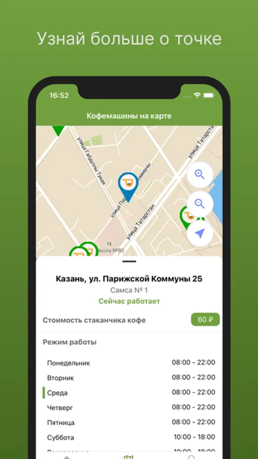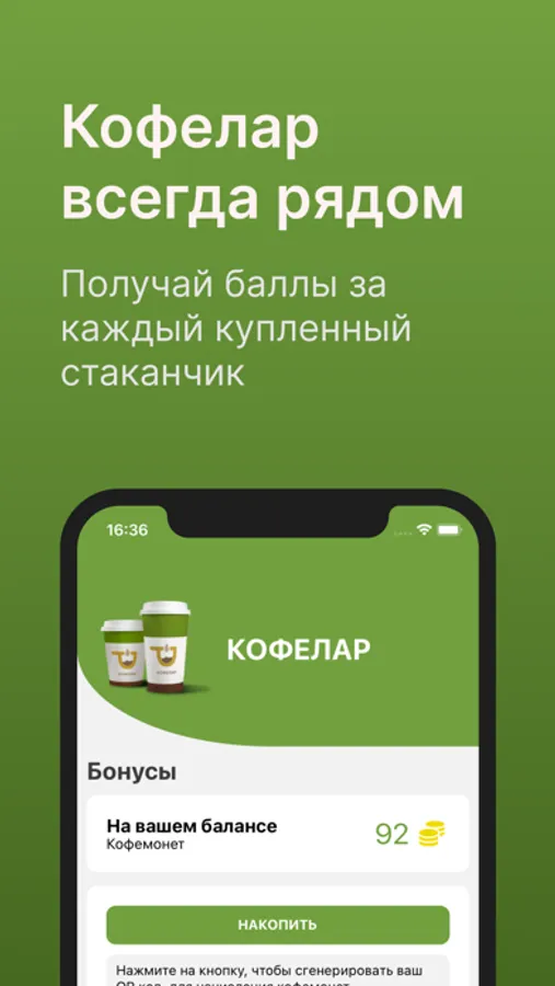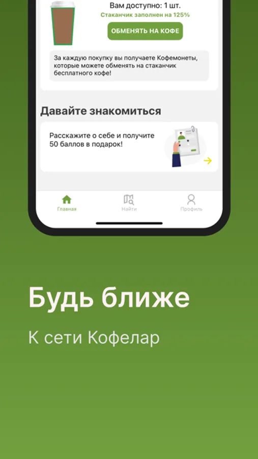Получай бонусы с каждой покупки, находи кофе на карте и обменивай баллы на бесплатный кофе!