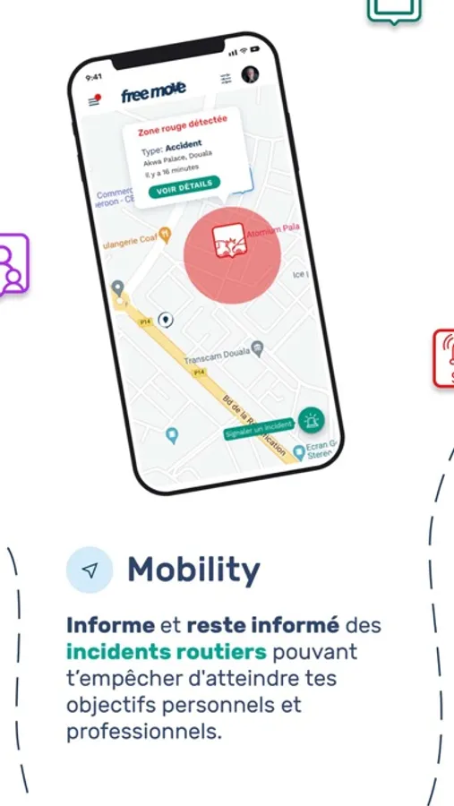 D’informer et d’etre informé des incidents routiers telque les embouteillages, routes endommagées et barrées etc… pouvant vous empêcher d’atteindre vos objectifs professionnels et personnels