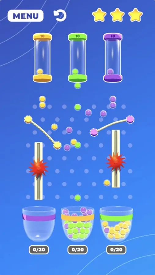 The goal is simple: to maneuver objects such as balls or fruit so that they fall perfectly into a specific glass. However, the path to success is not so simple. You have to avoid obstacles that threaten to block your progress.