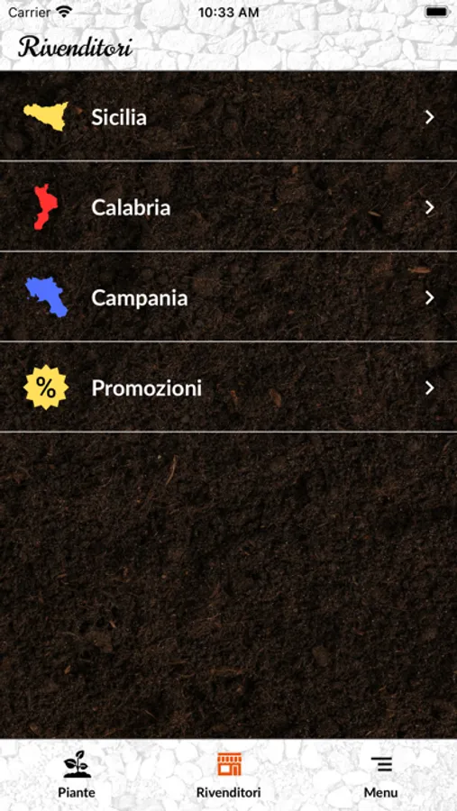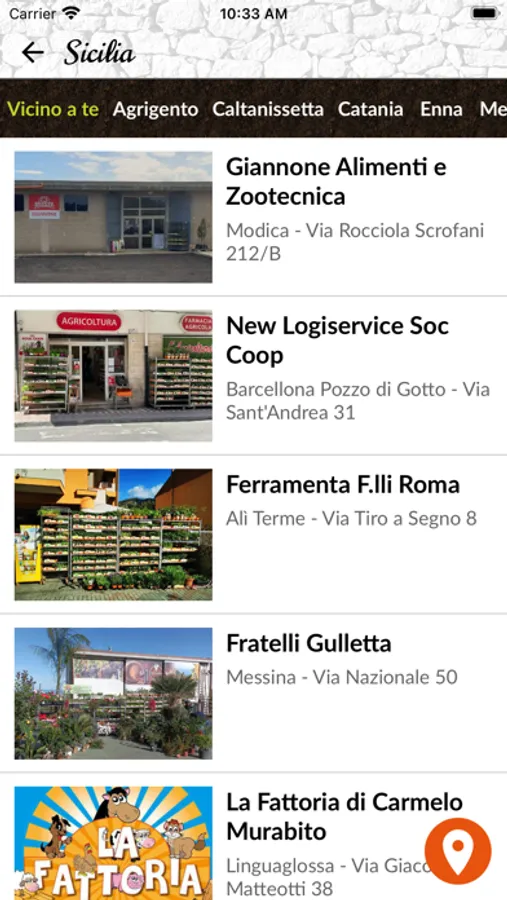 Seleziona la tua regione tra Sicilia, Calabria e Campania, accederai all'elenco delle nostre rivendite. In cima all'elenco troverai la rivendita più vicina a te. Puoi anche visualizzare una mappa interattiva. Tocca sulla rivendita, troverai le indicazioni stradali per raggiungerla e dei pulsanti per entrare in contatto con essa.