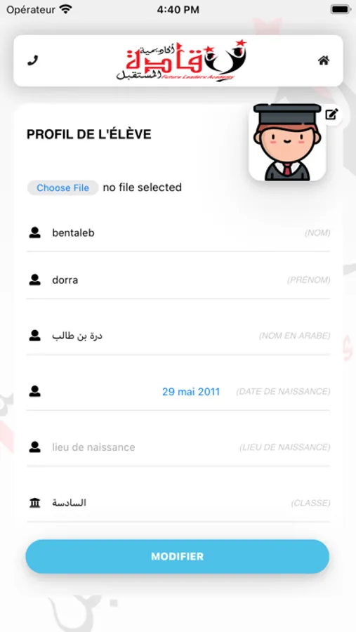 L'application future leaders mobile permet au parent d'être à côté de son enfant: suivre les activités pédagogiques, recevoir des conseils du cadre de l'école, être à jour pour les évènements culturels et sportifs. Contacter l'administration de l'école, recevoir les bulletins des notes, ....future leaders Mobile c'est être informé là où vous êtes... Cher parent future leaders télécharger future leaders Mobile et entrer votre identifiant et mot de passe disponible par sms ou à l'administration de l'école.