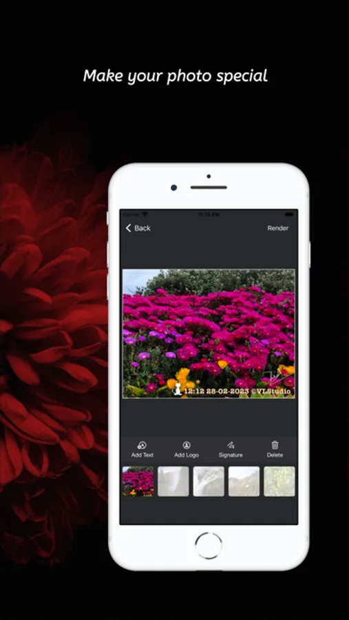 Our application is a professional image editing tool that allows users to stamp logos, dates and signatures on images. With our app you can create professional, highly authentic and outstanding images suitable for photographers, social media professionals, bloggers or those who want to share. Share images with greater trust.
