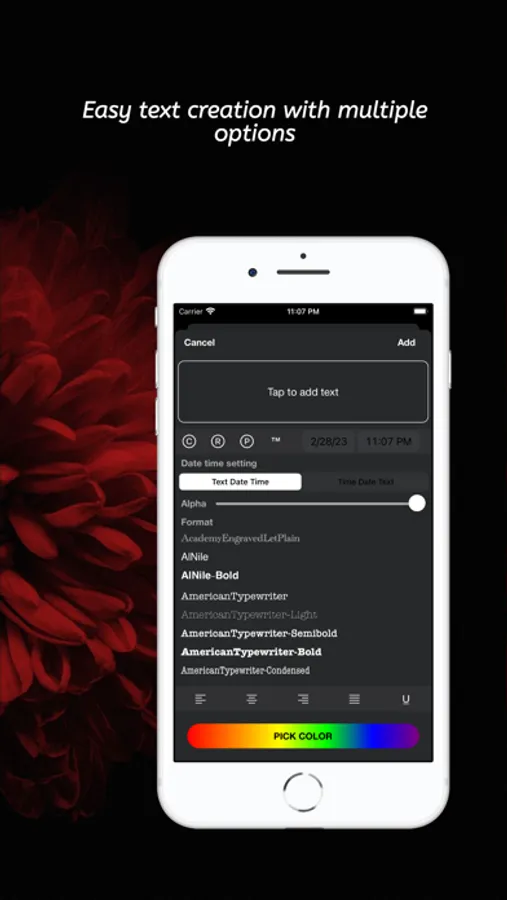The app's image stamp functionality makes it easy for users to add their logos to images, date them to remember important moments, and add signatures to affirm the image's identity. Besides, with other image editing features such as cropping, color correction and applying effects, you can create professional, unique and creative photos.